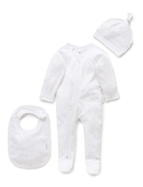 Organic Snuggle Sleepsuit Zip Footie with Frill | Lilac Skies
