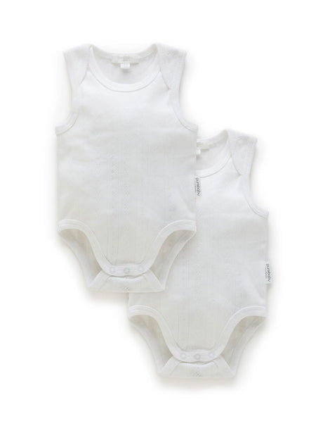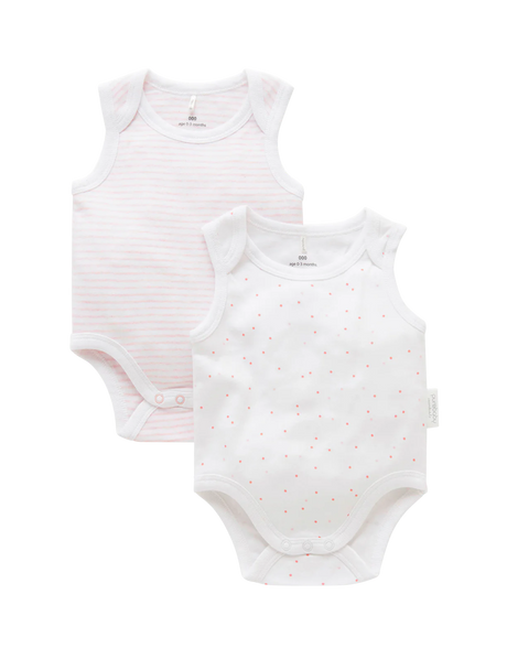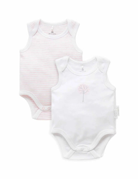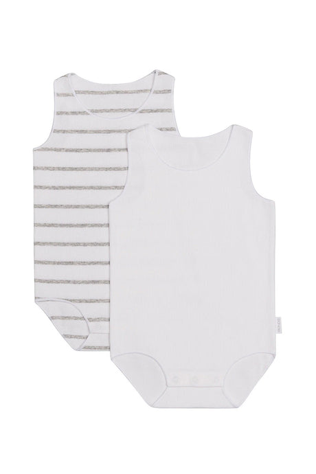 Baby Wonderbodies Rib Singletsuit 2 Pack | White & Grey Stripe & White
