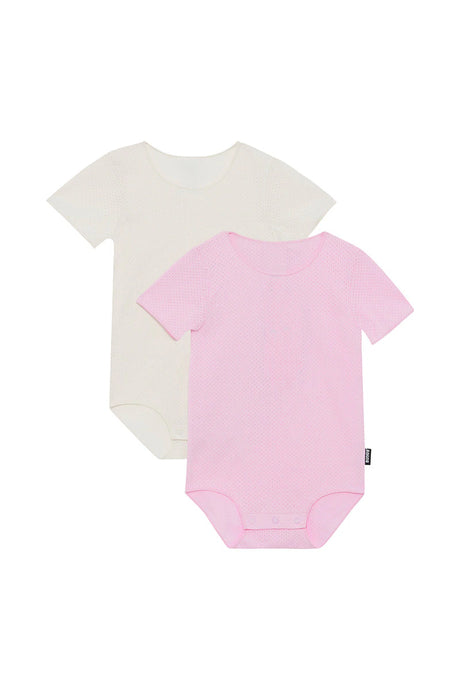 Wondercool Eyelet Short Sleeve Bodysuit 2 Pack | Cotton Gumball Pink /Macadamia