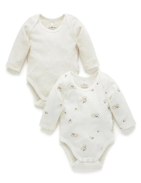 Rib Long Sleeve Wonderbodies 2 Pack | White & Grey Stripe / White