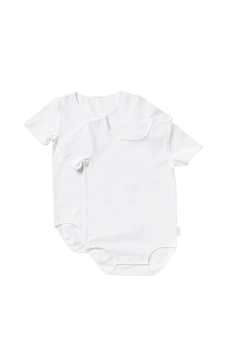 Rib Short Sleeve Bodysuit 2 Pack | White & Grey Stripe & White