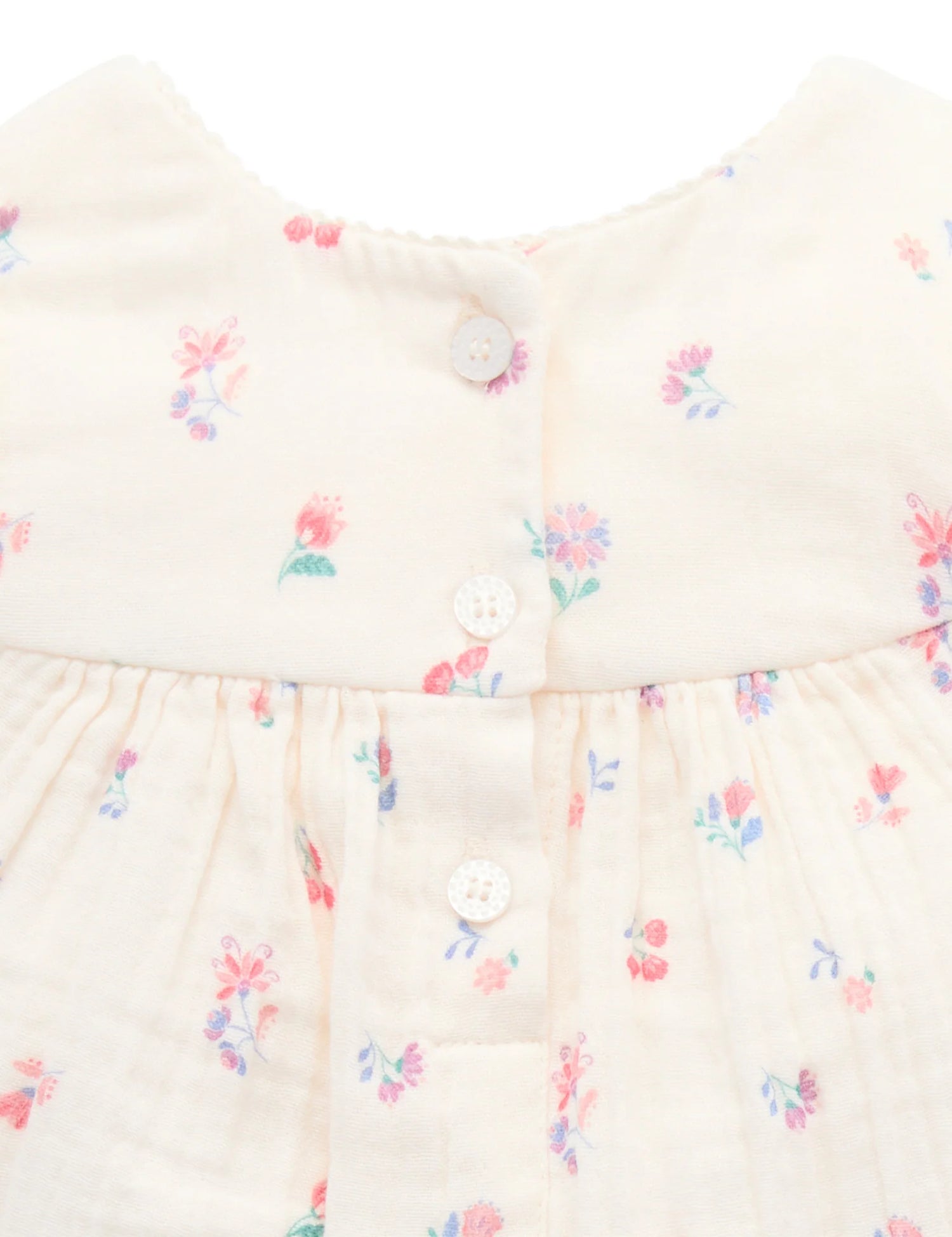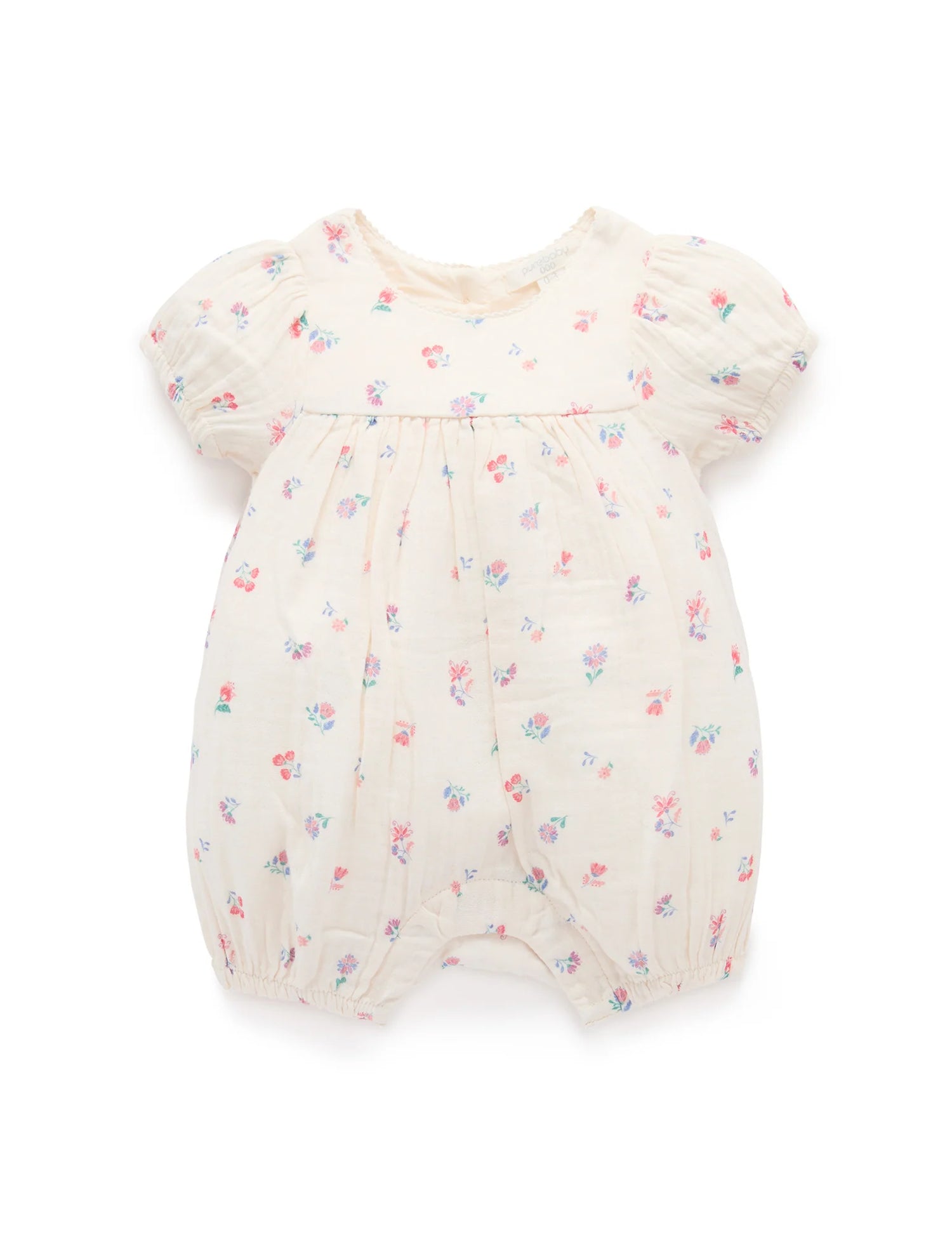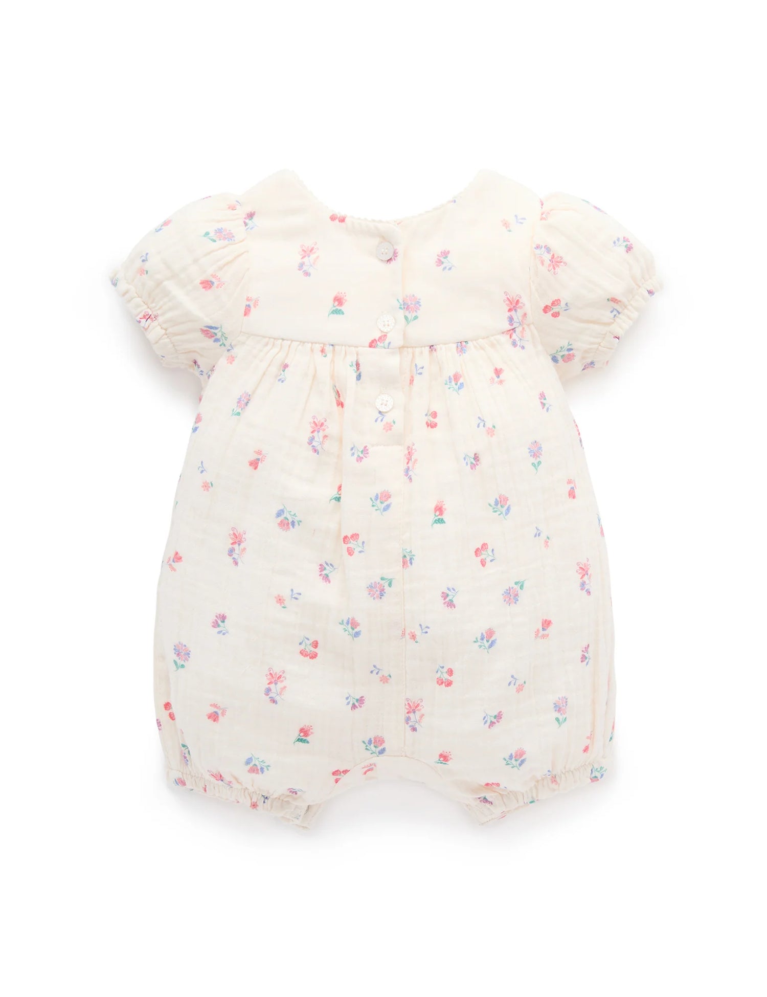 Our Marigold Fiesta Romper is the perfect lightweight summer style. Featuring a sweet all over watercolour floral print and puffed cap sleeves. Designed as a balloon style, with snap clips for easy dressing and gathers around the legs for a comfortable fit. Made from the softest 100% Organic Cotton muslin for a breathable outfit.